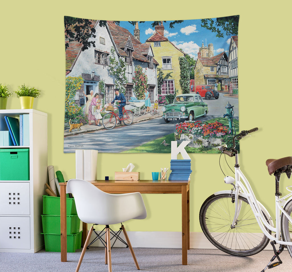 3D Houses Flower Bed Car 11242 Trevor Mitchell Tapestry Hanging Cloth Hang Sinsin