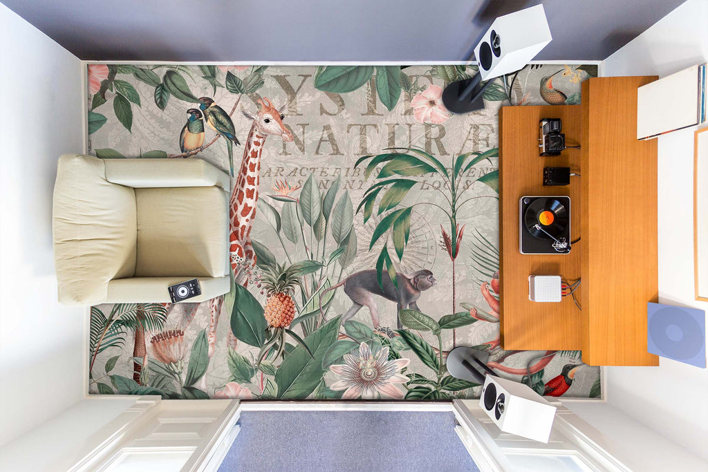 3D Jungle Giraffe Monkey 104167 Andrea Haase Floor Mural Sinsin