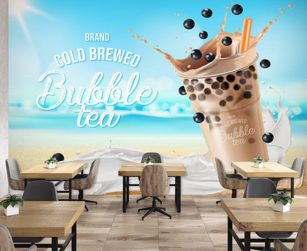 3D Pearl Tea 2074 Fruit Bubble Tea Milk Tea Shop Wall Murals Amy