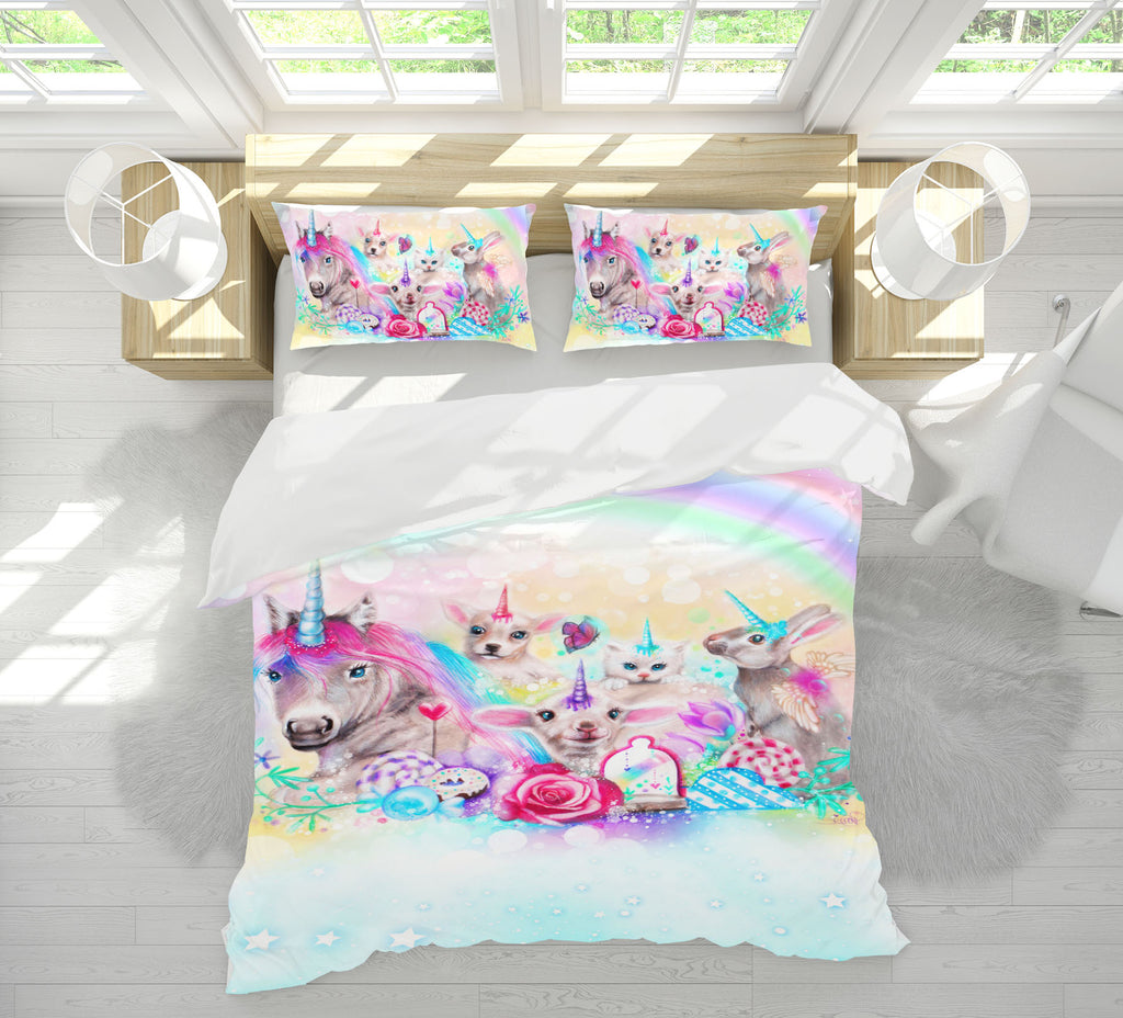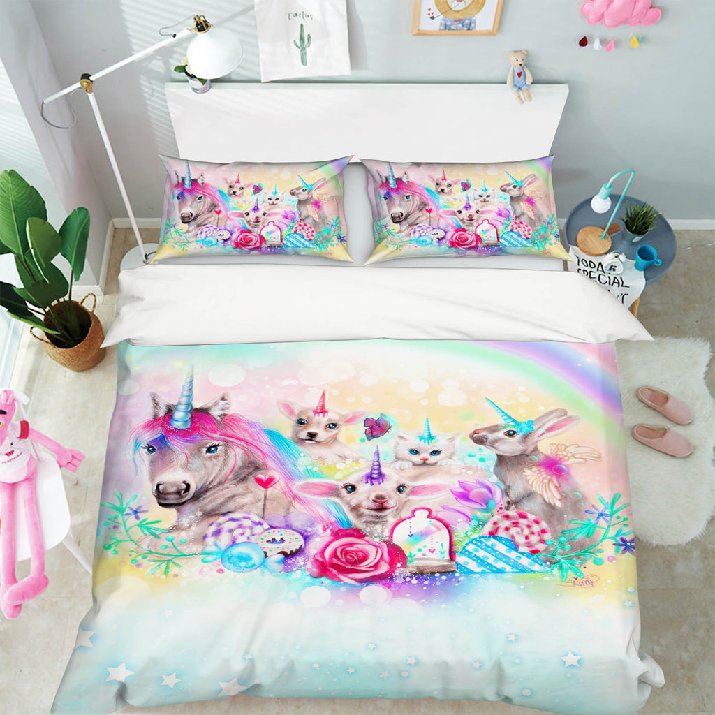 3D Rainbow Unicorn Bunny 8626 Sheena Pike Bedding Bed Pillowcases Quilt Cover Duvet Cover Amy
