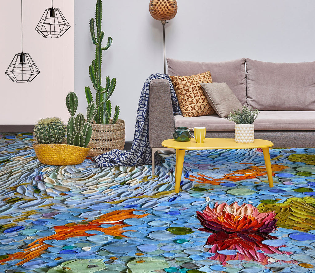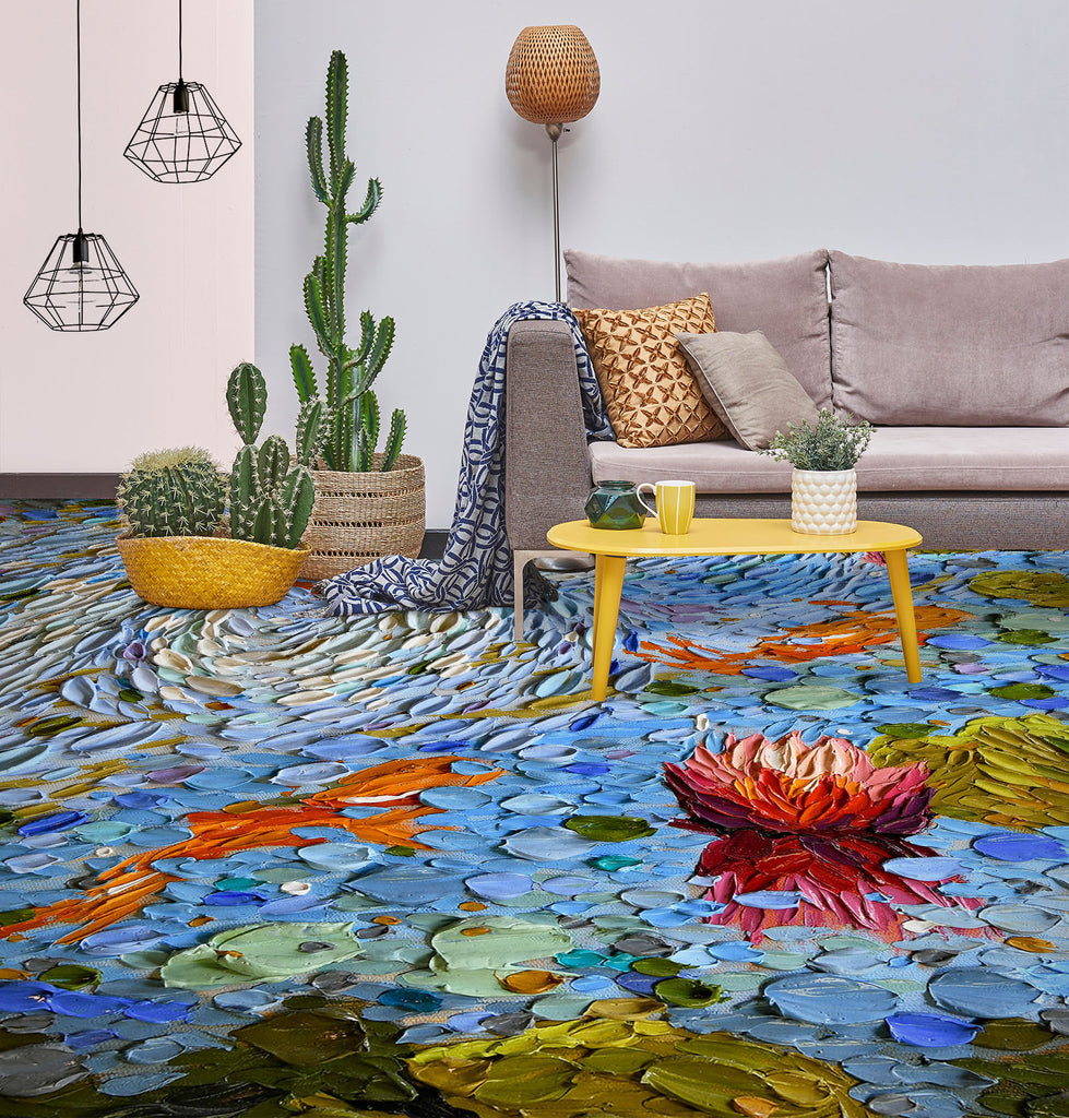 3D Red Lotus Goldfish 102162 Dena Tollefson Floor Mural Sinsin
