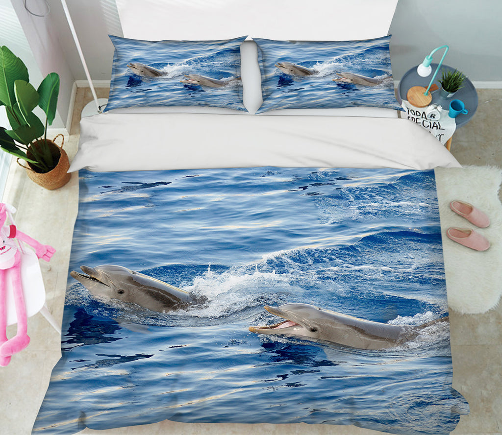 3D Sea Surface Dolphin 19218 Bed Pillowcases Quilt