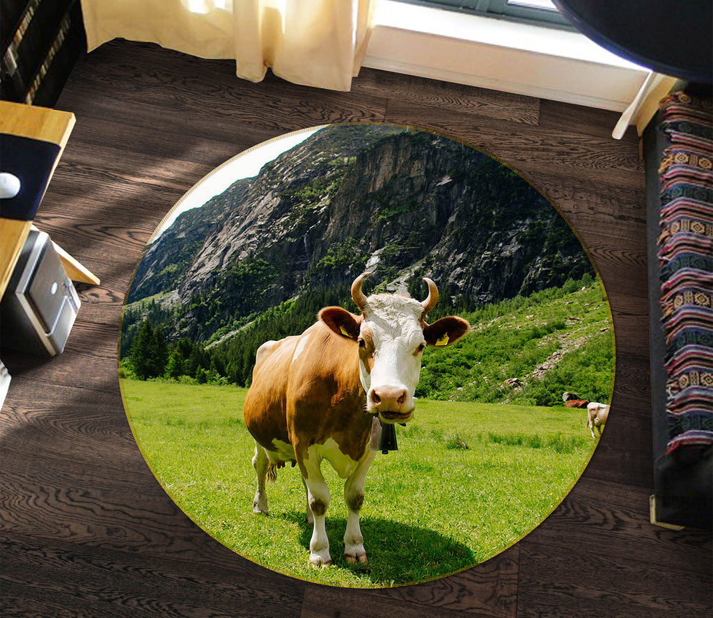 3D Grassland Cows 82181 Animal Round Non Slip Rug Mat