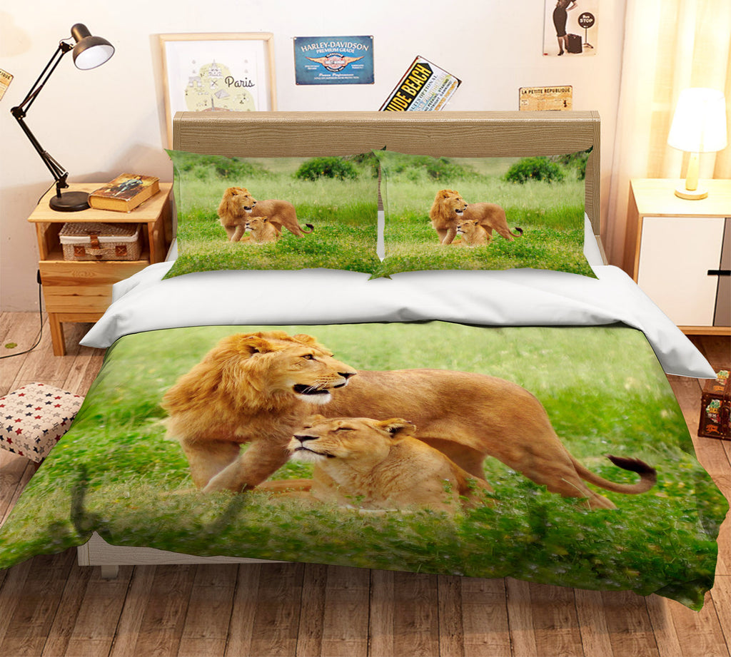 3D Lawn Lion 136 Bed Pillowcases Quilt Zoe