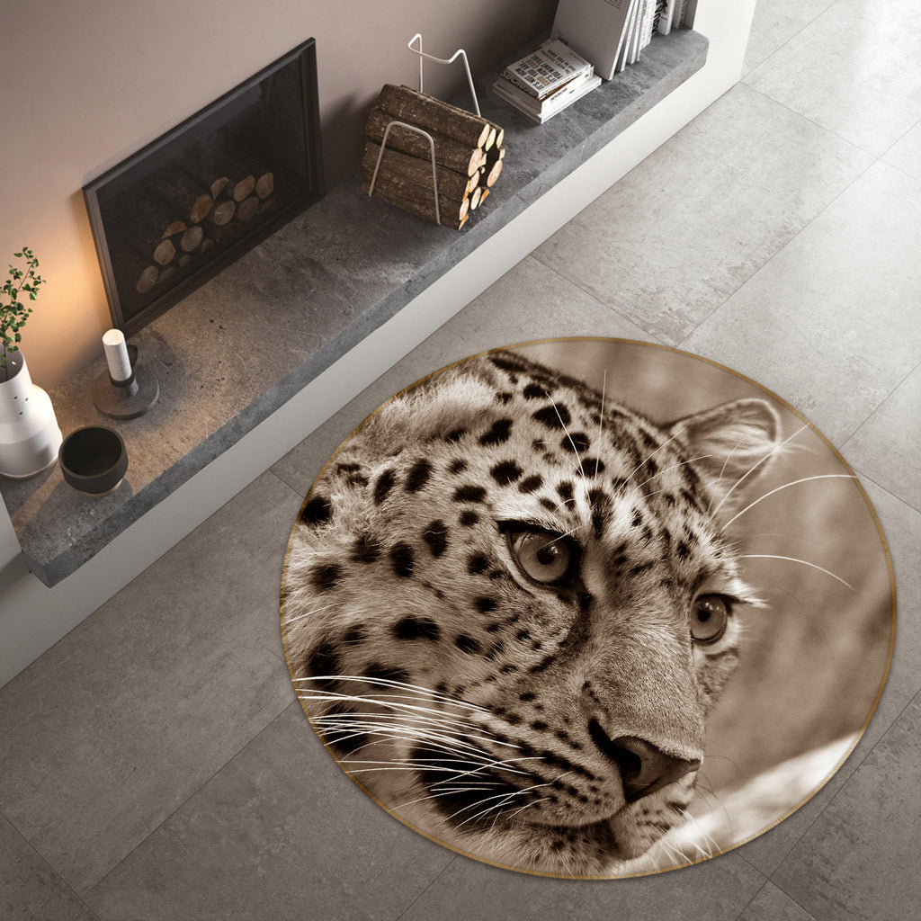 3D Leopard 81265 Animal Round Non Slip Rug Mat