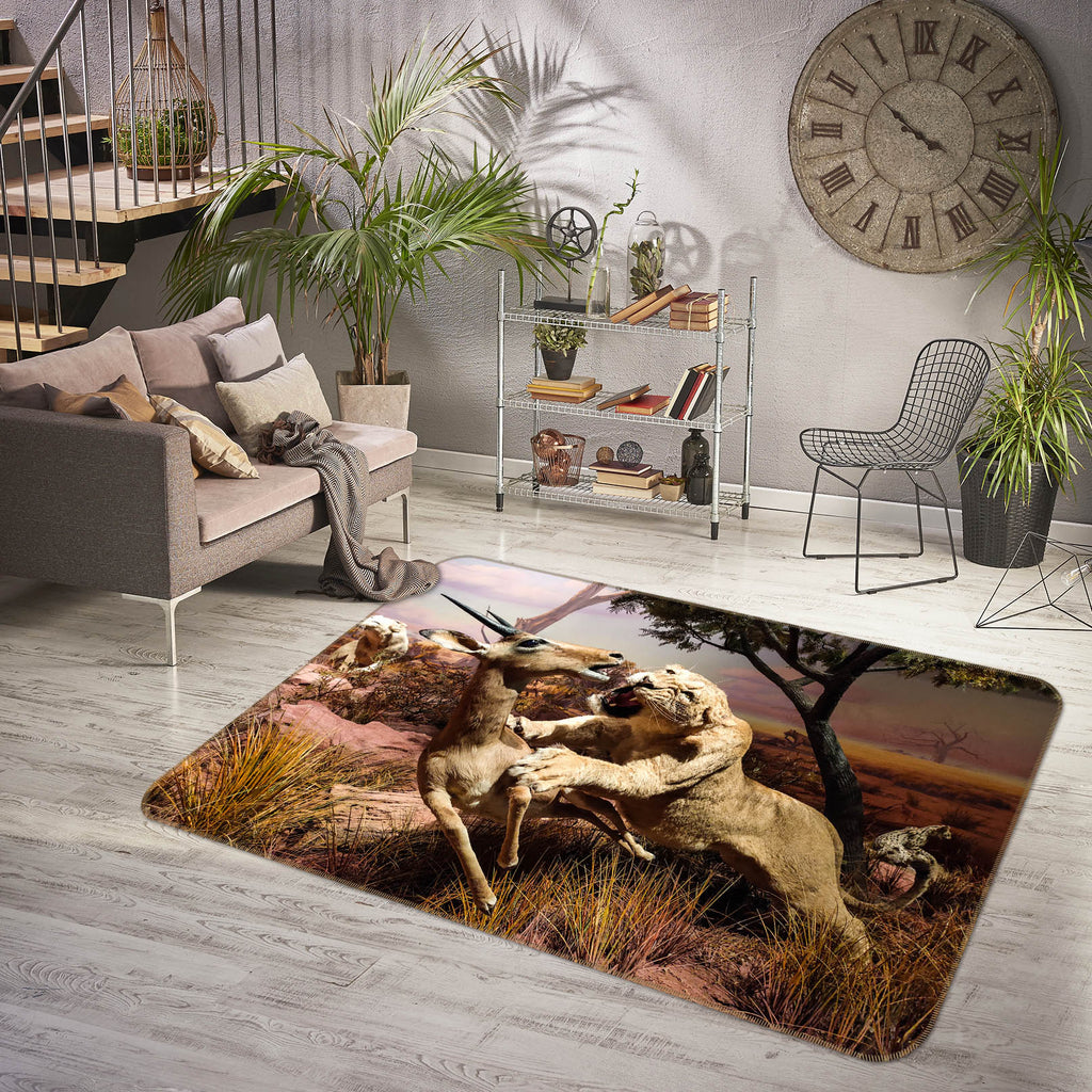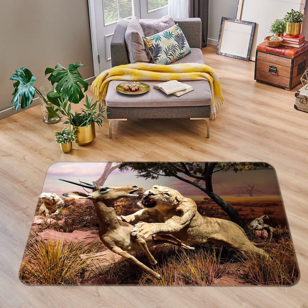 3D Lion Hunting Antelope 68216 Animal Non Slip Rug Mat Sinsin