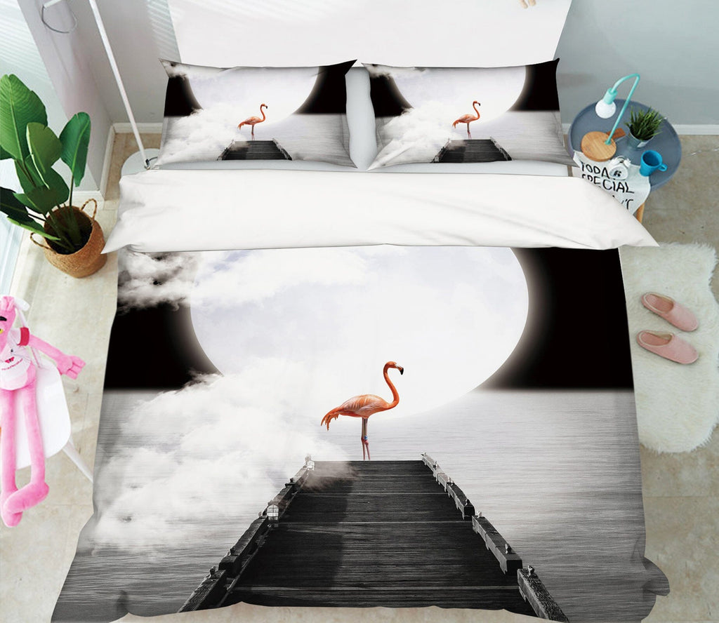 3D Lonely Flamingo 1925 Bed Pillowcases Quilt