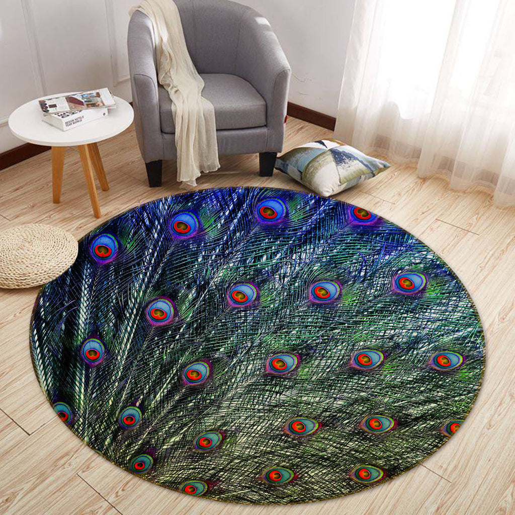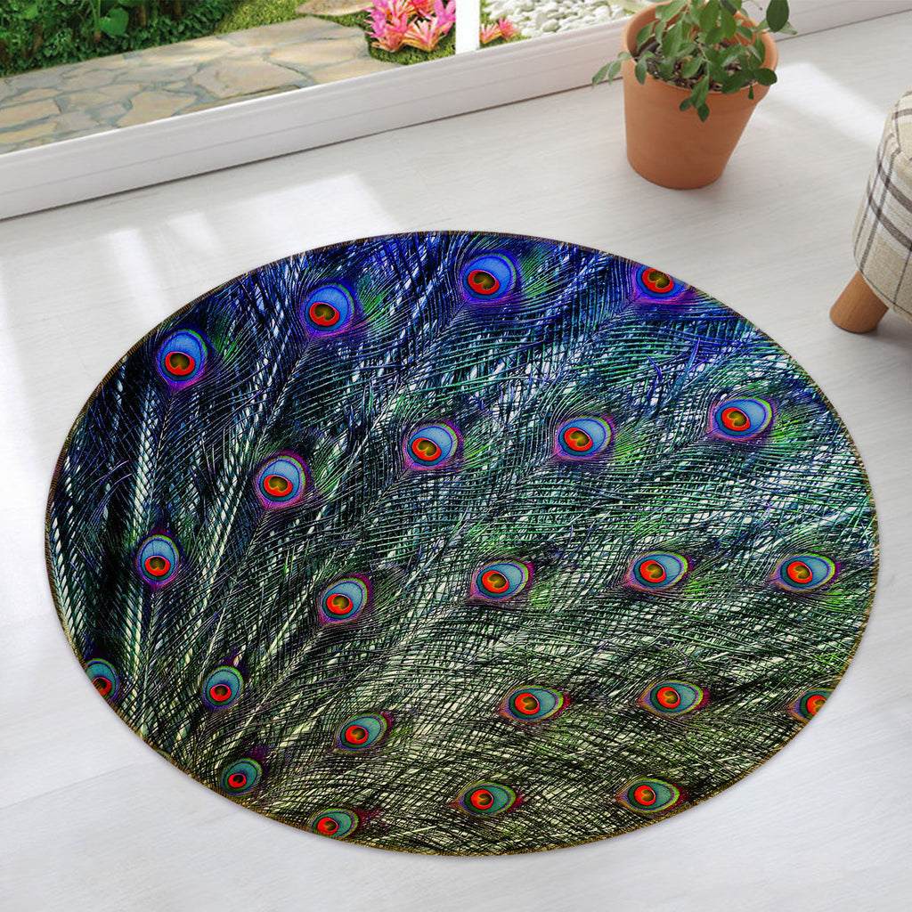 3D Peacock Feather 82039 Animal Round Non Slip Rug Mat