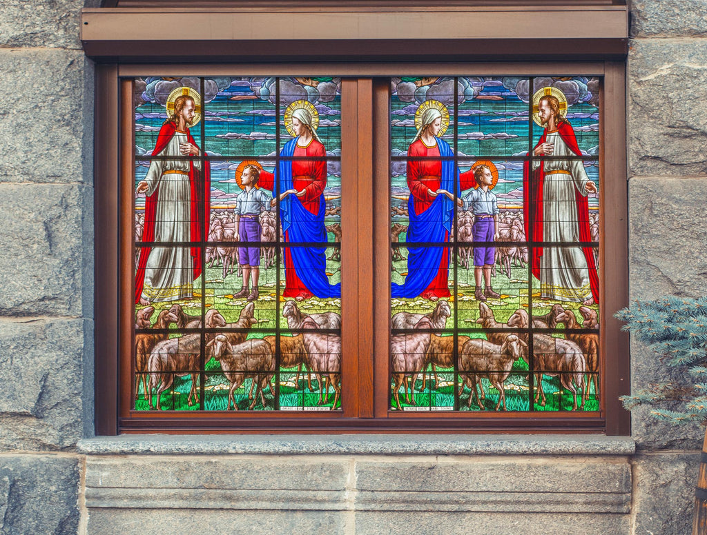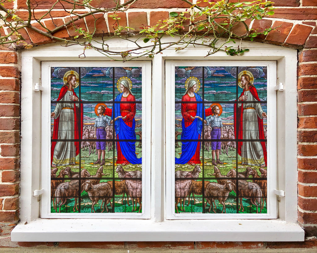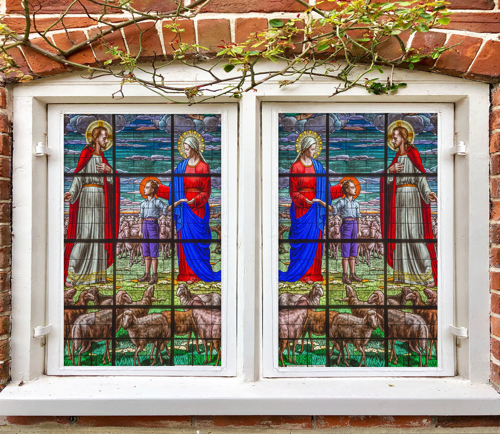 3D Sheep Group 039 Window Film Print Sticker Cling Stained Glass UV Block