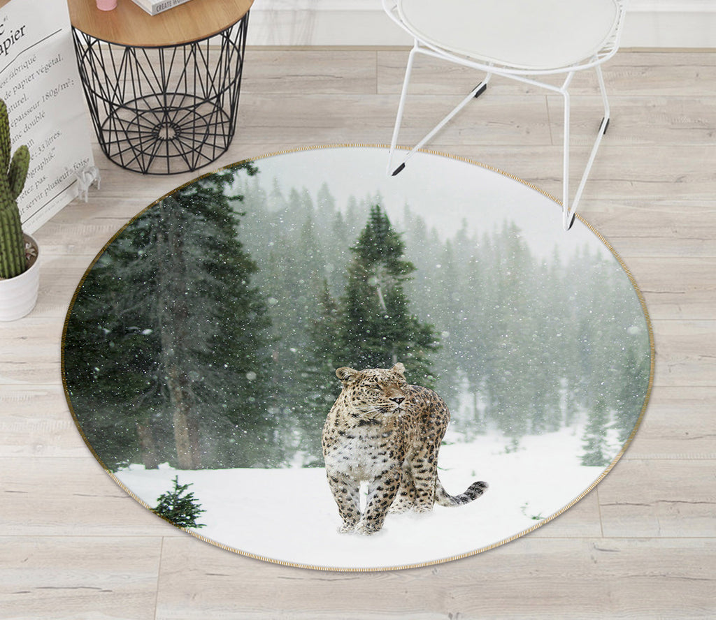3D Snowfield Leopard 82040 Animal Round Non Slip Rug Mat Sinsin
