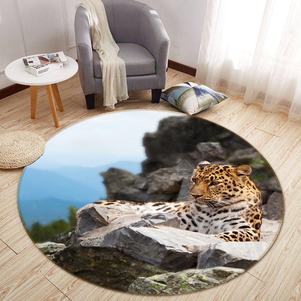 3D Stone Leopard 82221 Animal Round Non Slip Rug Mat Sinsin