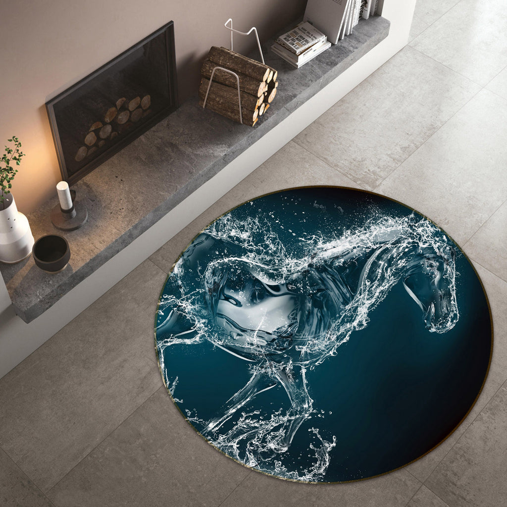 3D Water Horse 82035 Animal Round Non Slip Rug Mat Sinsin