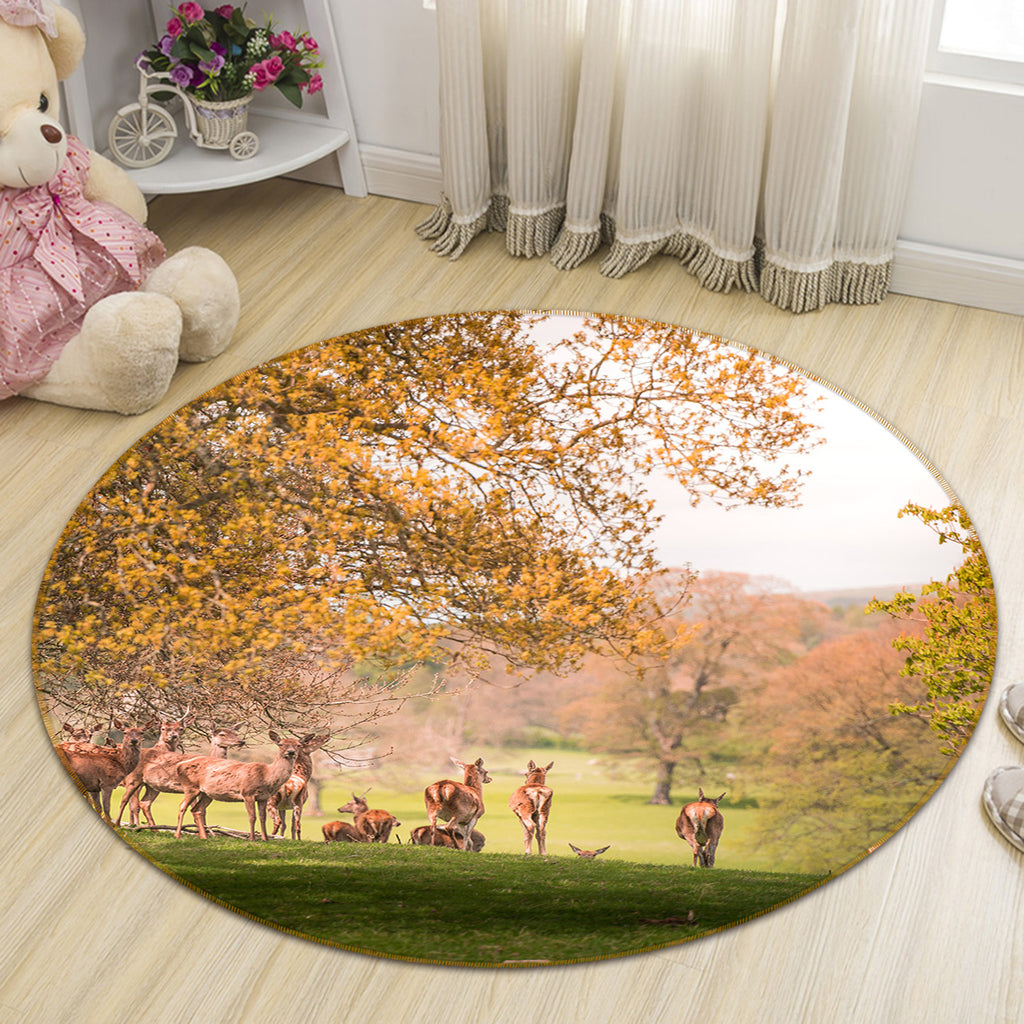 3D Wild Raindeer Coutry Park Autumn 82288 Animal Round Non Slip Rug Mat Sinsin