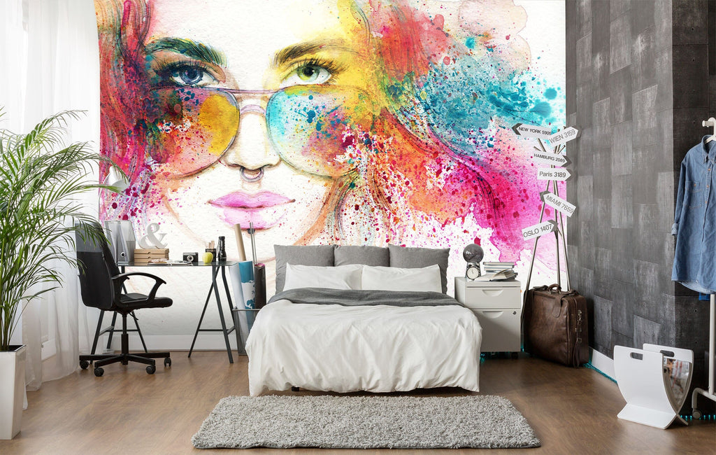 3D Color Glasses Girl 136 Wall Murals