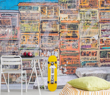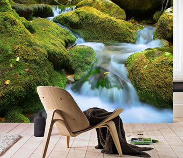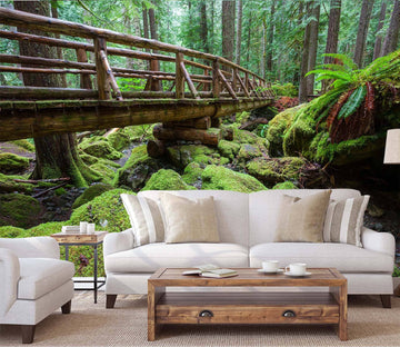 3D Green Wooden Bridge Stone 023 Wall Murals