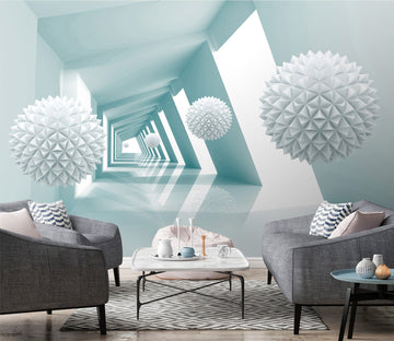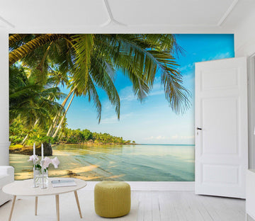 3D Coconut Tree Seawater Waves 125 Door Mural