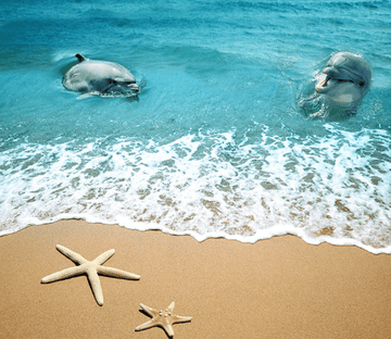 3D Dolphin Stone Cave 1970 Floor Wallpaper