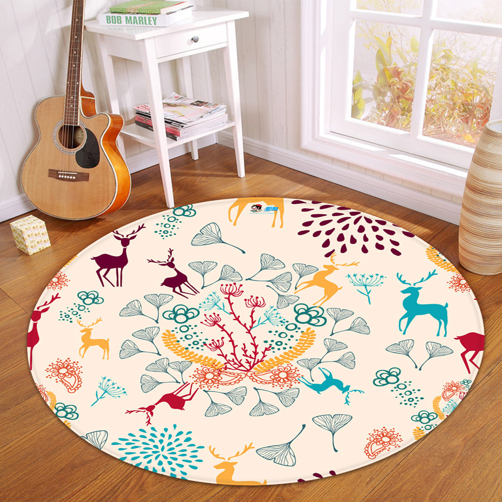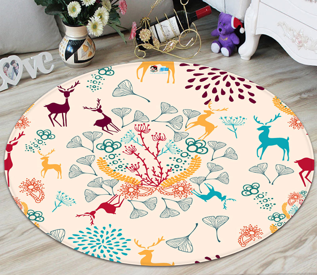 3D Deer Ginkgo Biloba 66002 Christmas Round Non Slip Rug Mat Xmas Sinsin