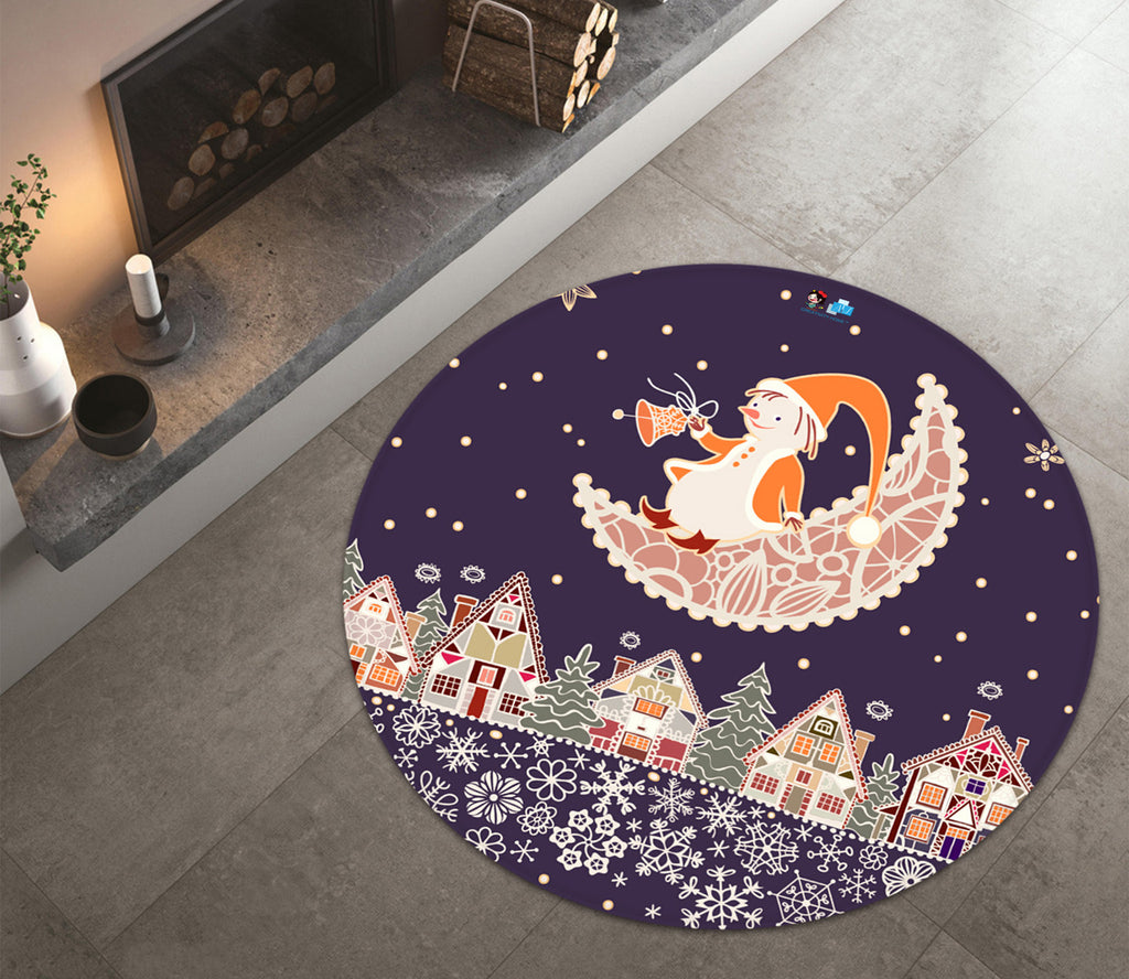 3D Santa Moon Houses Snowflakes 66021 Christmas Round Non Slip Rug Mat Xmas Sinsin