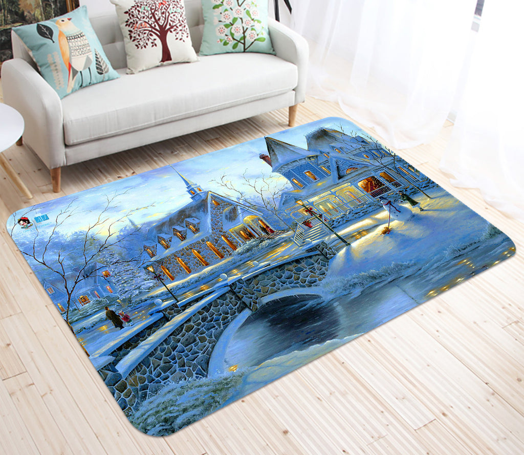 3D Snow House Bridge 65180 Christmas Non Slip Rug Mat Xmas Sinsin