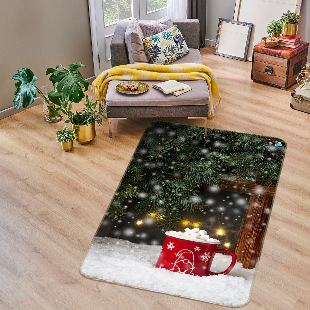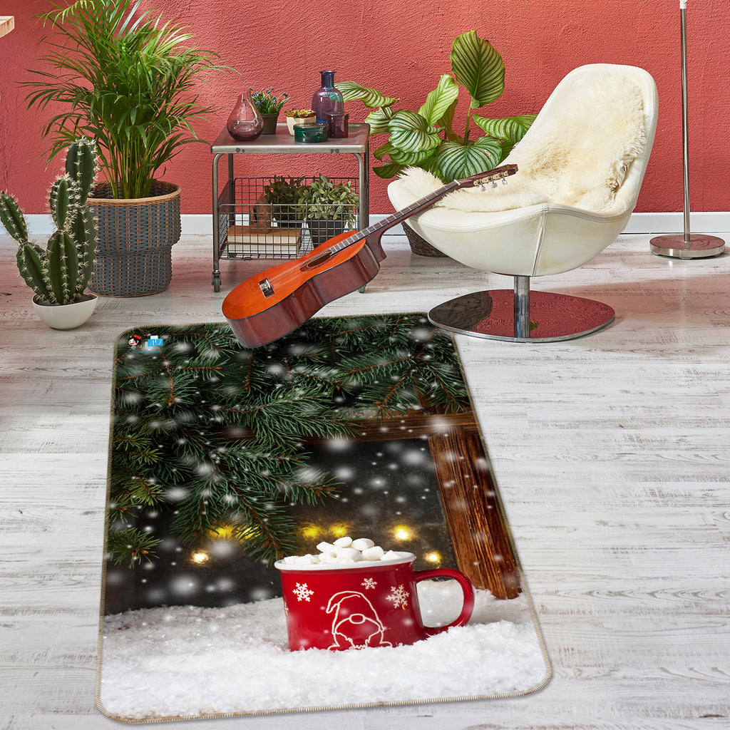 3D Snow Red Cup 55158 Christmas Non Slip Rug Mat Xmas Sinsin