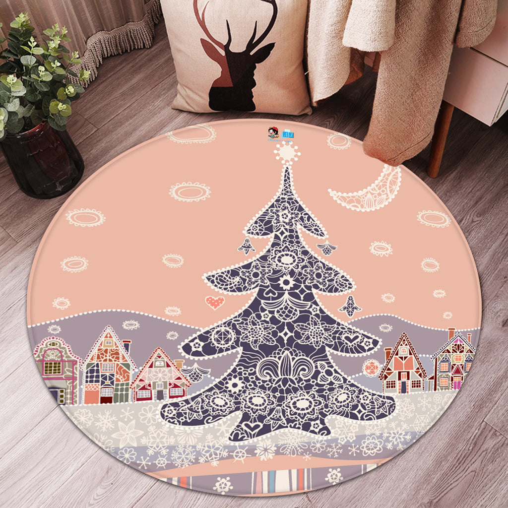 3D Snowfield Tree 66022 Christmas Round Non Slip Rug Mat Xmas Sinsin