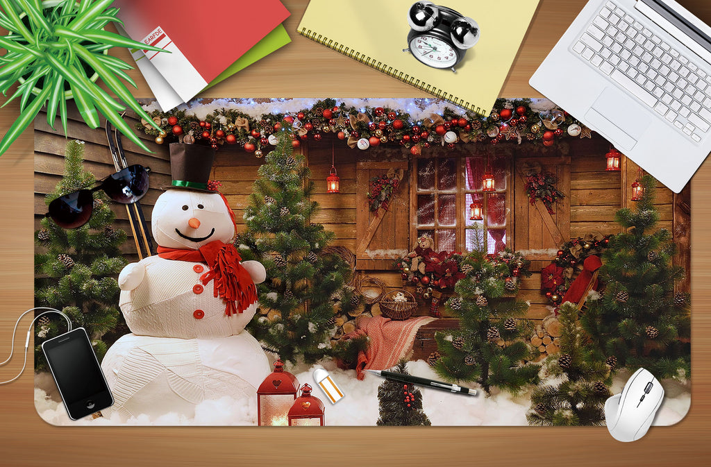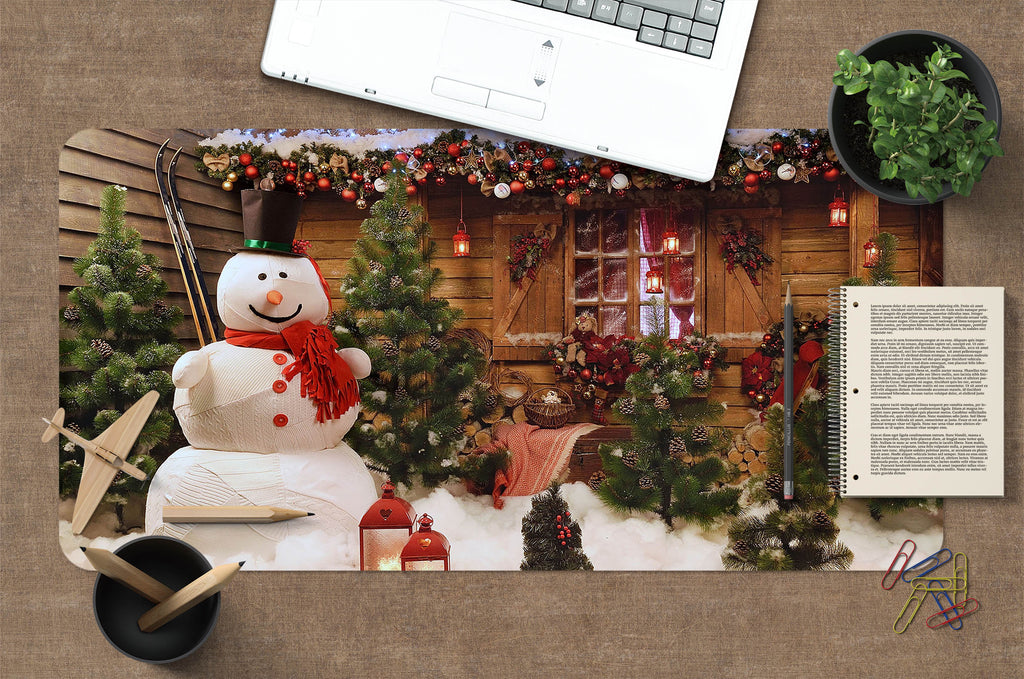 3D Snowman Wooden House 51242 Christmas Desk Mat Xmas Sinsin