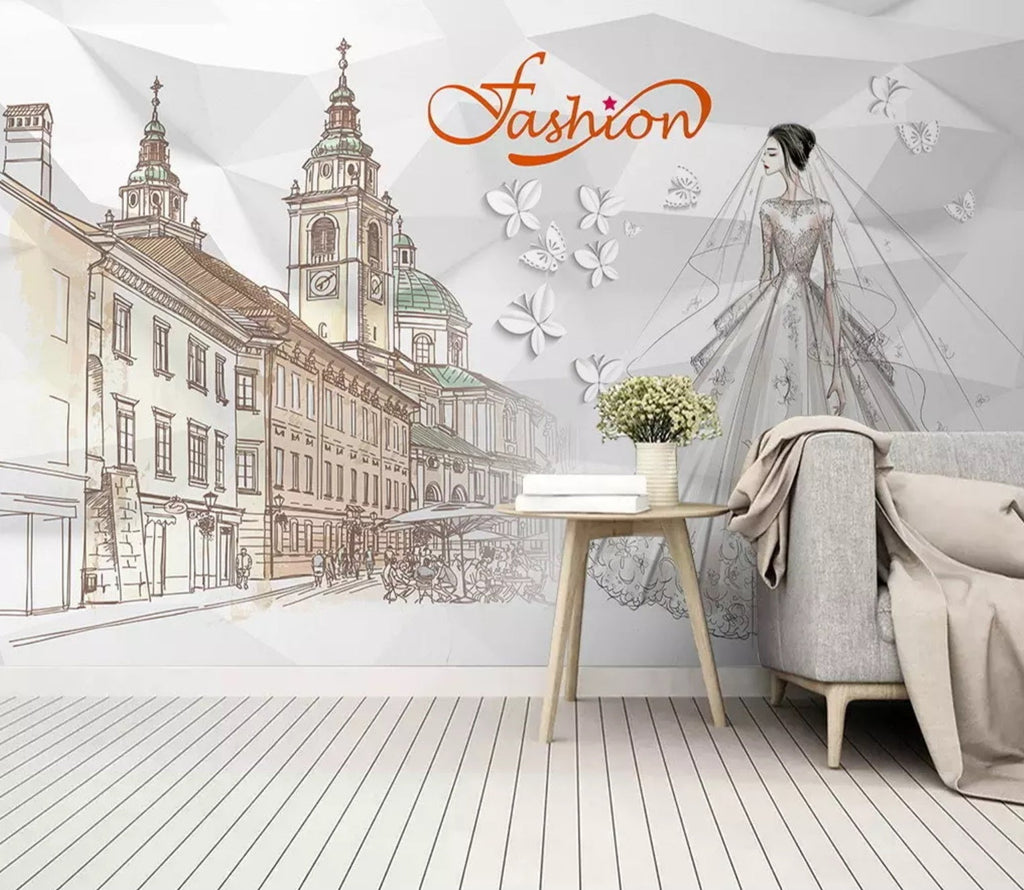 3D Urban Wedding Dress 1391 Wall Murals
