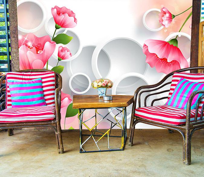 3D Red Blooming Flowers Scene