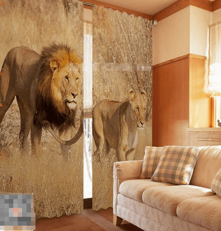 3D Lion Couple 1015 Curtains Drapes