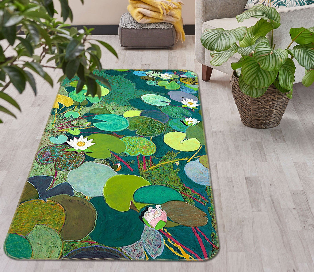 3D Green Lotus Pond 3012 Allan P. Friedlander Rug Non Slip Rug Mat Dai