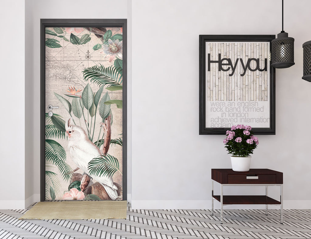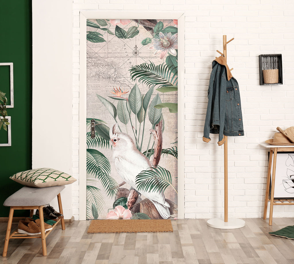 3D White Parrot Leaves 11946 Andrea Haase Door Mural Sinsin