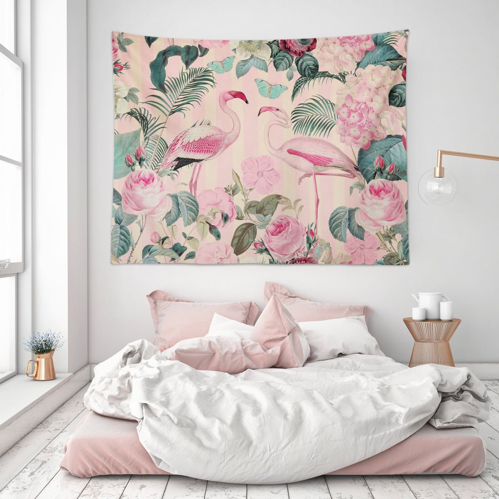 3D Leaves Pink Flowers Flamingo 11844 Andrea haase Tapestry Hanging Cloth Hang Sinsin