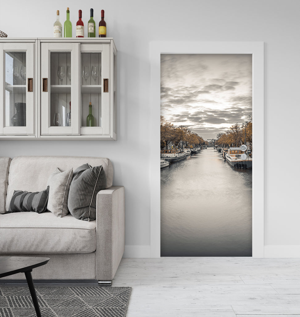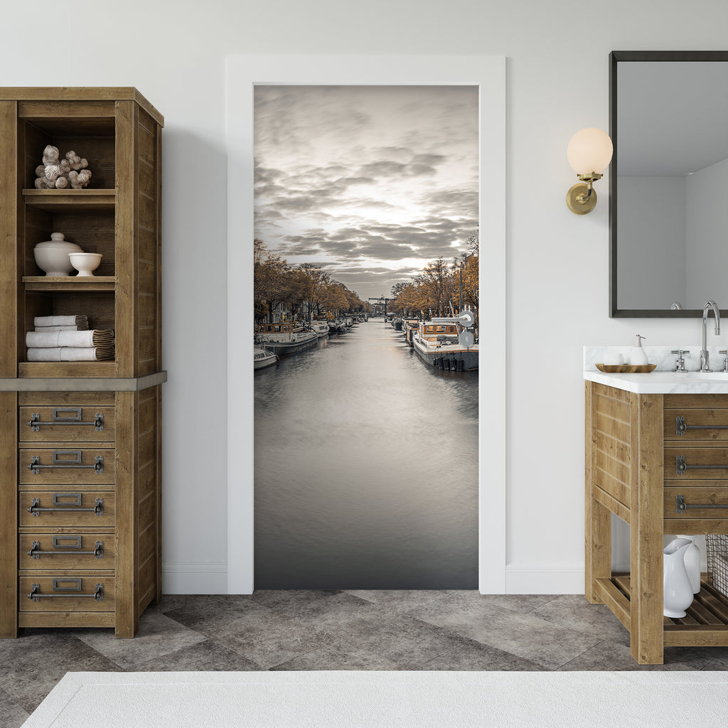 3D Small River Boat Trees 106166 Assaf Frank Door Mural Sinsin