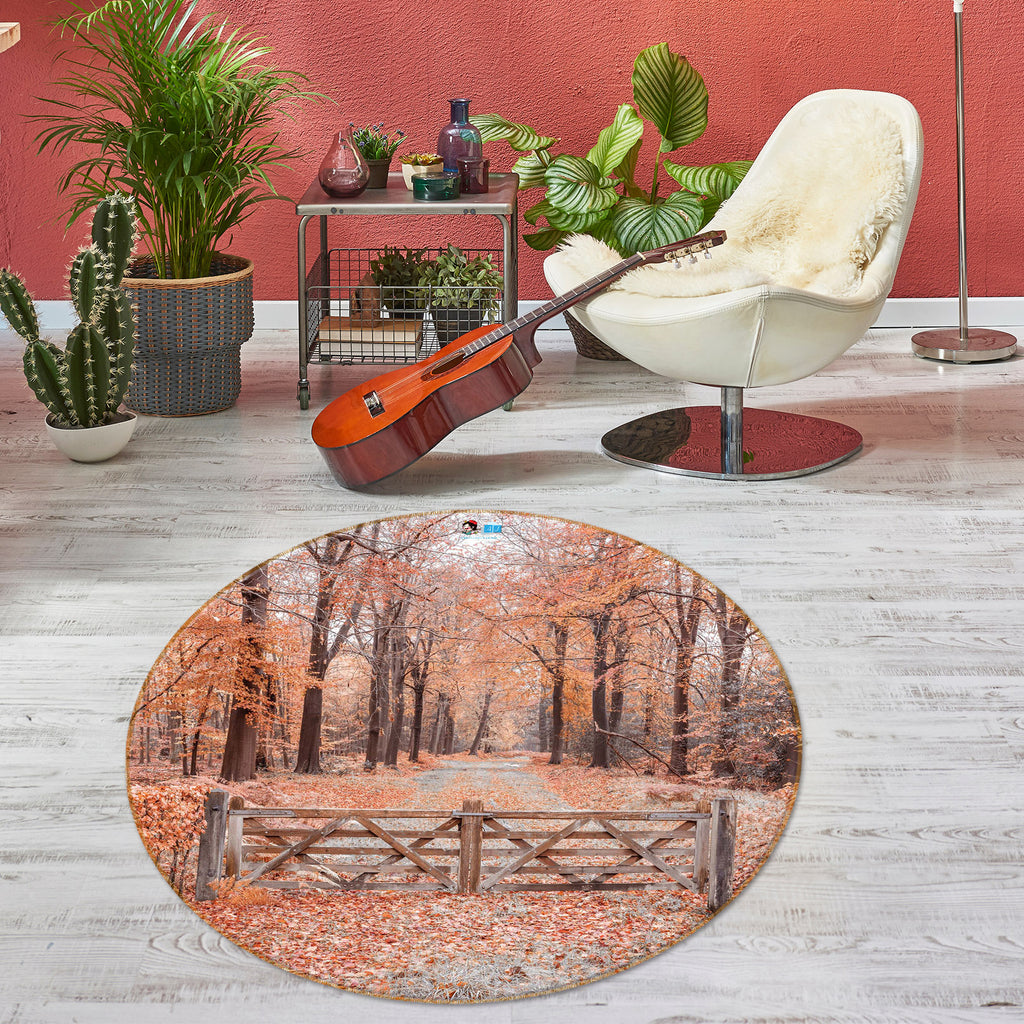 3D Yellow Leaves 7333 Assaf Frank Rug Round Non Slip Rug Mat Amy