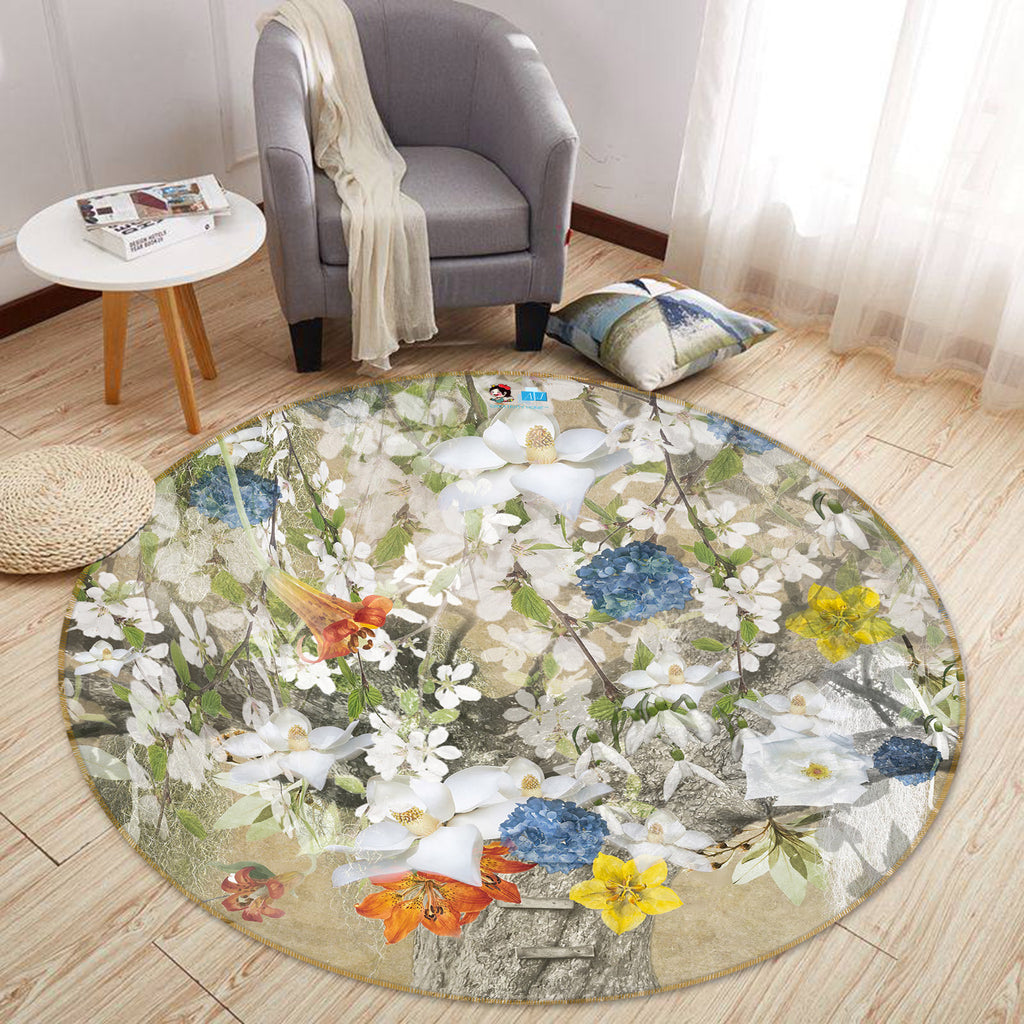 3D Vintage Flower 5064 Beth Sheridan Rug Round Non Slip Rug Mat Amy