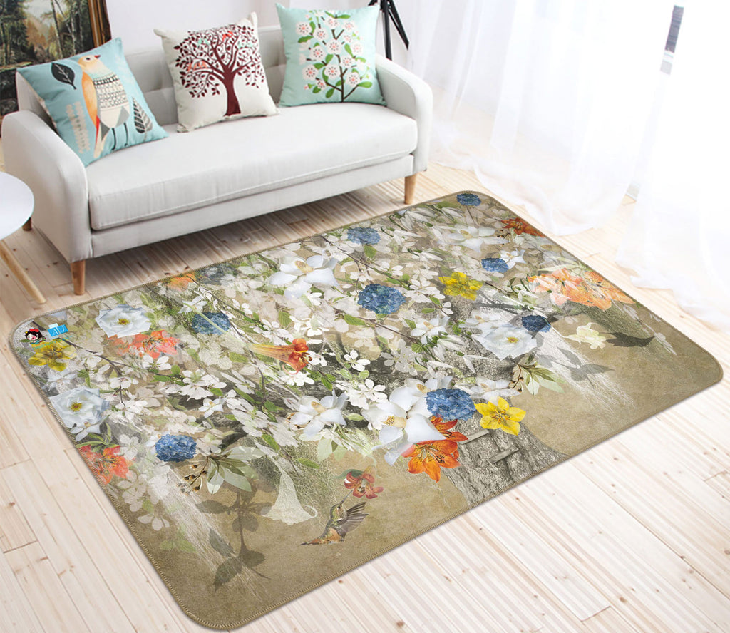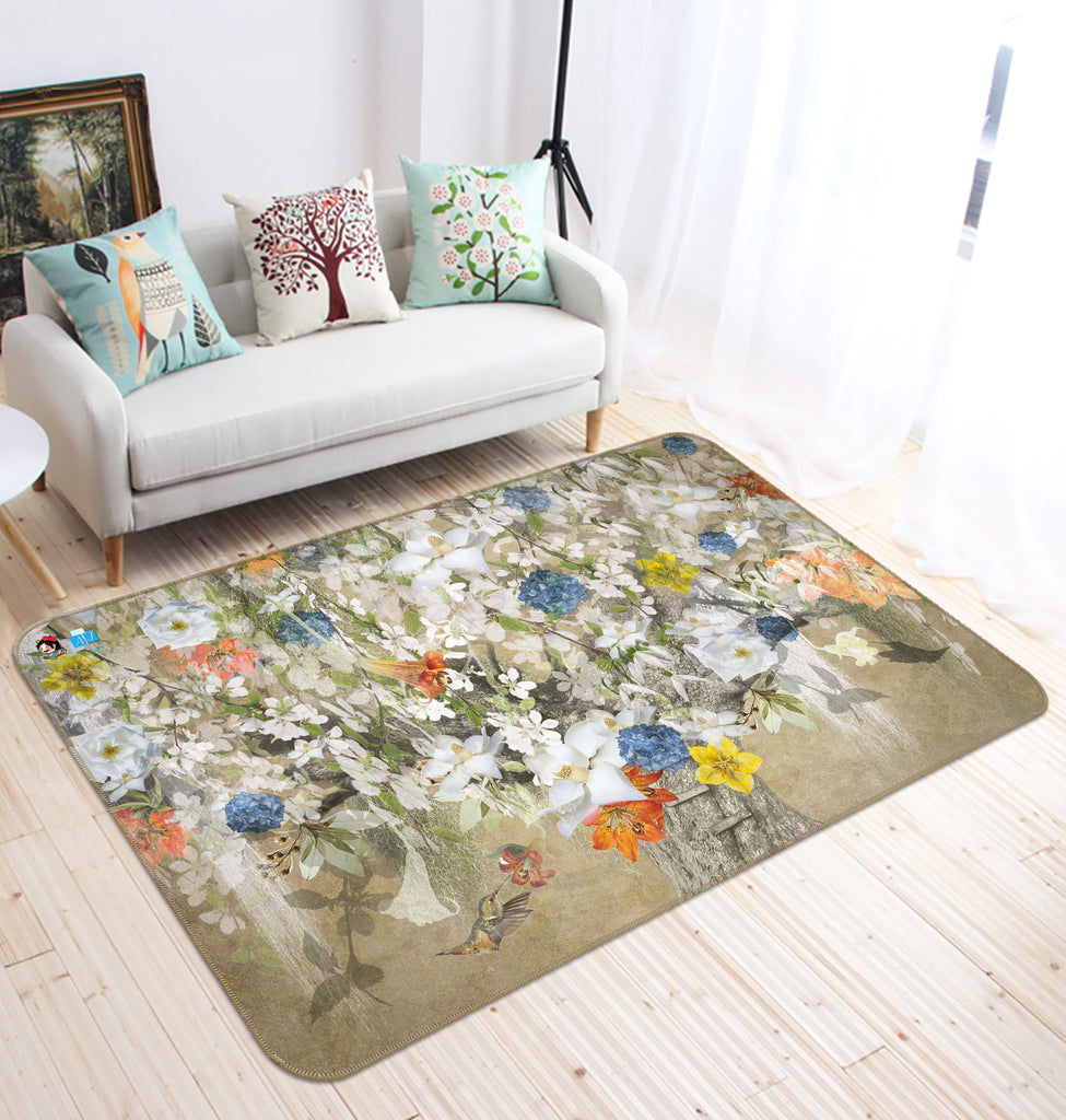 3D White Flowers 5154 Beth Sheridan Rug Non Slip Rug Mat Amy
