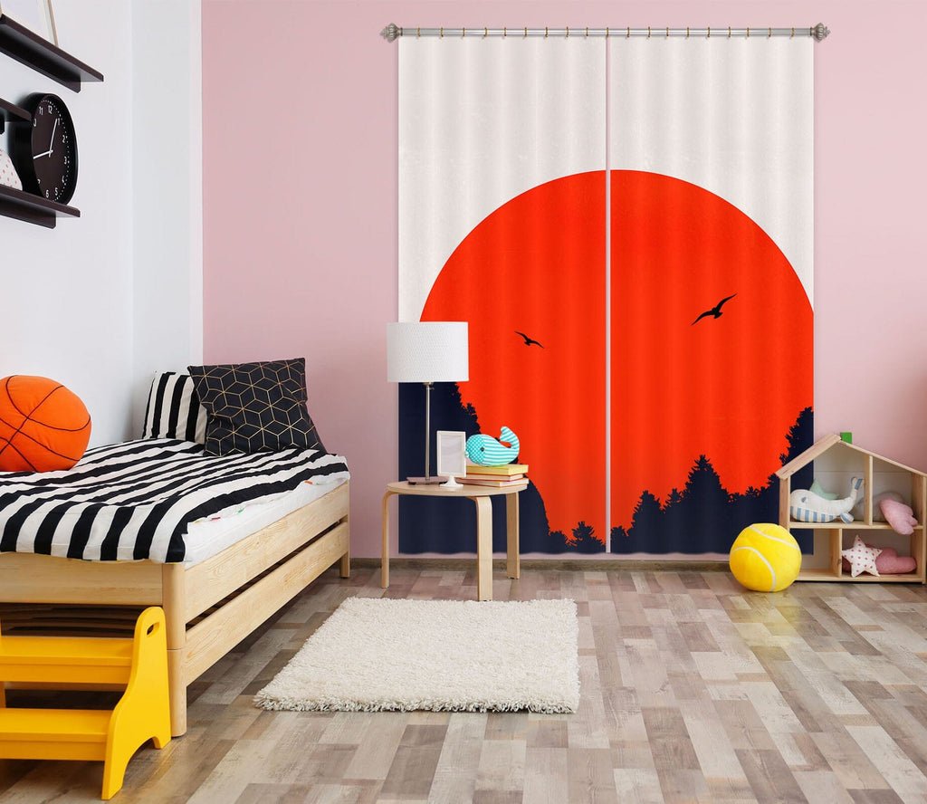 3D Red Sun Forest 1133 Boris Draschoff Curtain Curtains Drapes Zoe