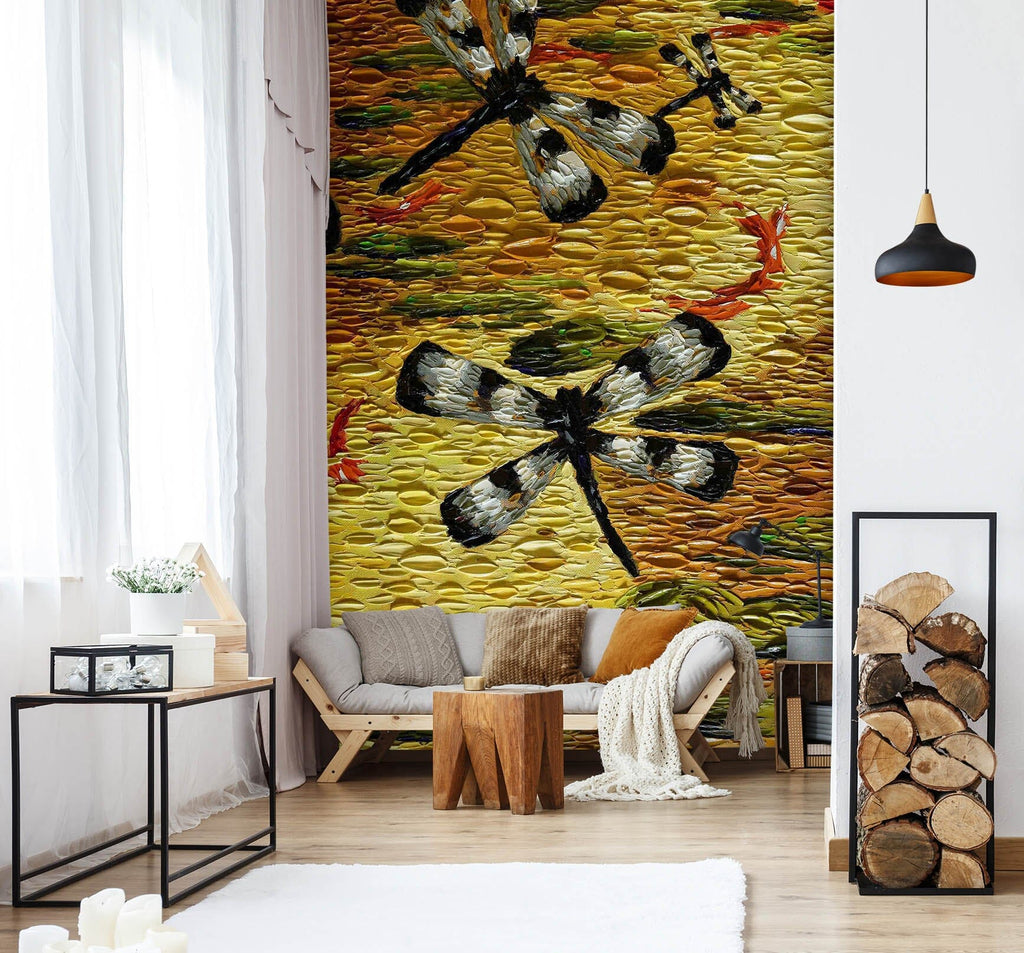 3D Golden Pond Dragonflies 1428 Dena Tollefson Wall Mural Wall Murals Dai