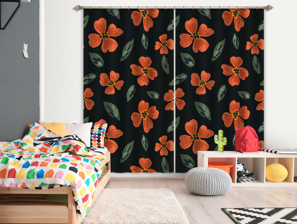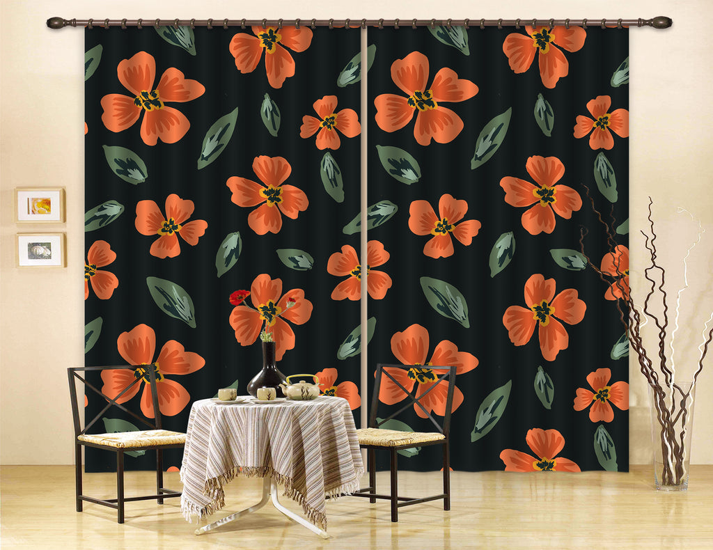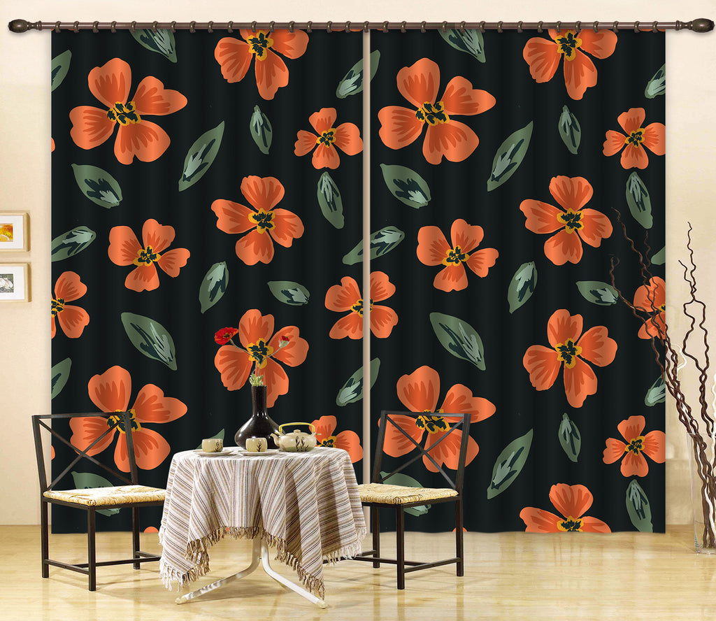 3D Orange Flowers Pattern 11159 Kashmira Jayaprakash Curtain Curtains Drapes Sinsin