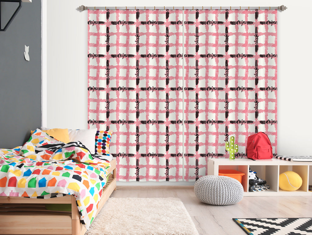 3D Pink Line Plaid 11152 Kashmira Jayaprakash Curtain Curtains Drapes Sinsin