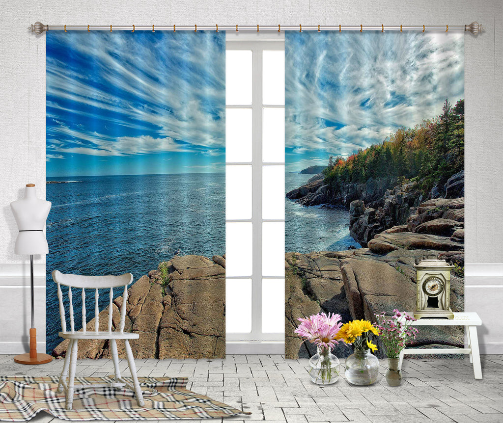 3D Big Rocks Sea 61213 Kathy Barefield Curtain Curtains Drapes Sinsin