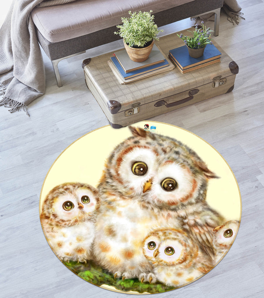 3D Cute Owl Moon 6039 Kayomi Harai Rug Round Non Slip Rug Mat Amy