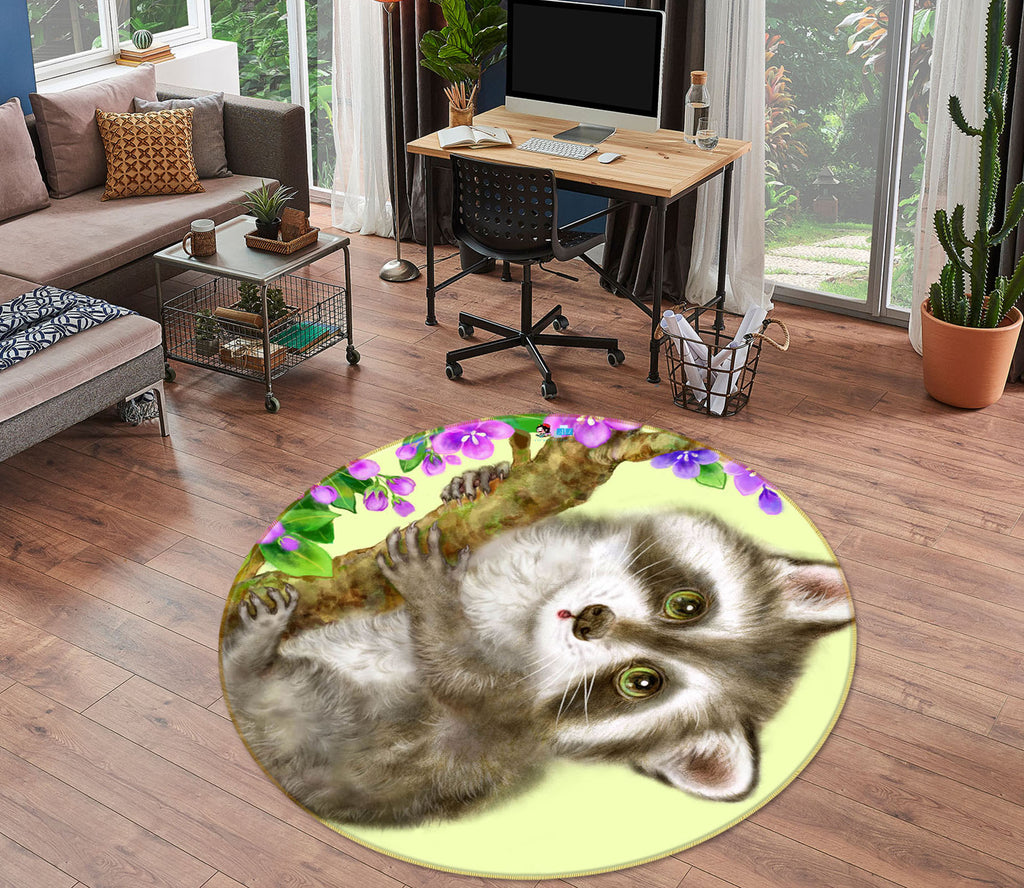 3D Flower Moon Tanuki 6054 Kayomi Harai Rug Round Non Slip Rug Mat Amy
