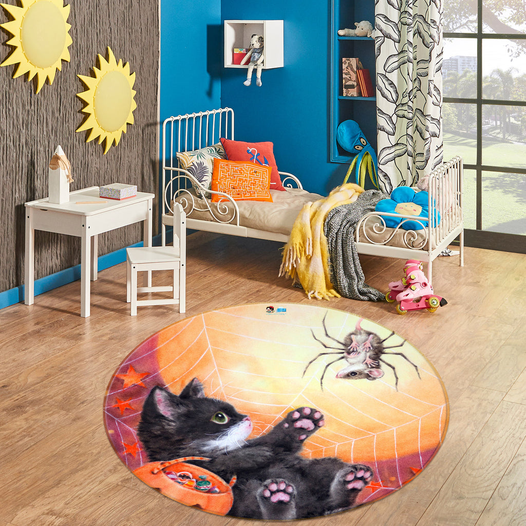 3D Halloween Black Cat 6062 Kayomi Harai Rug Round Non Slip Rug Mat Amy