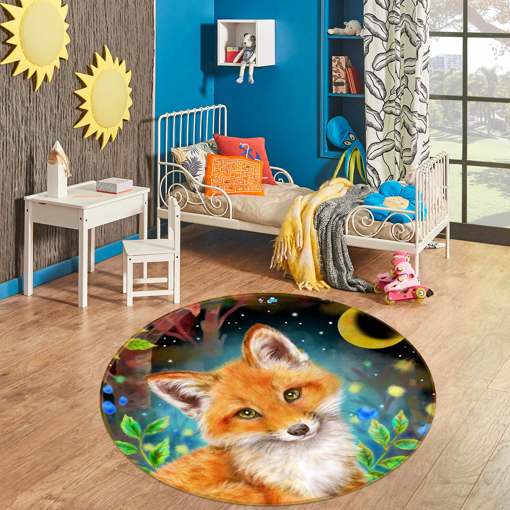 3D Orange Fox Moon 6027 Kayomi Harai Rug Round Non Slip Rug Mat Amy