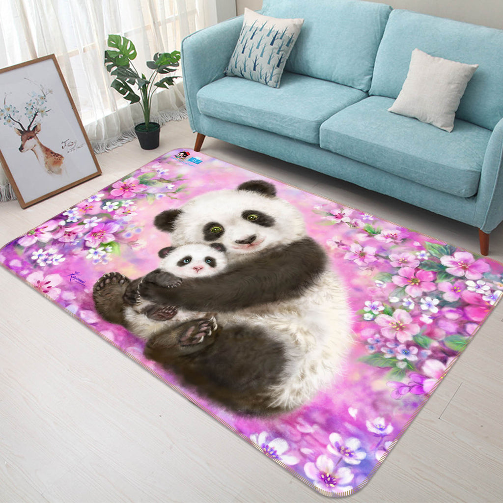 3D Pink Flower Panda 5624 Kayomi Harai Rug Non Slip Rug Mat Amy