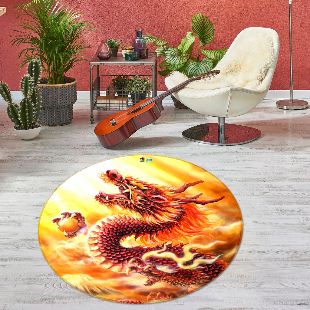 3D Red Dragon 6055 Kayomi Harai Rug Round Non Slip Rug Mat Amy
