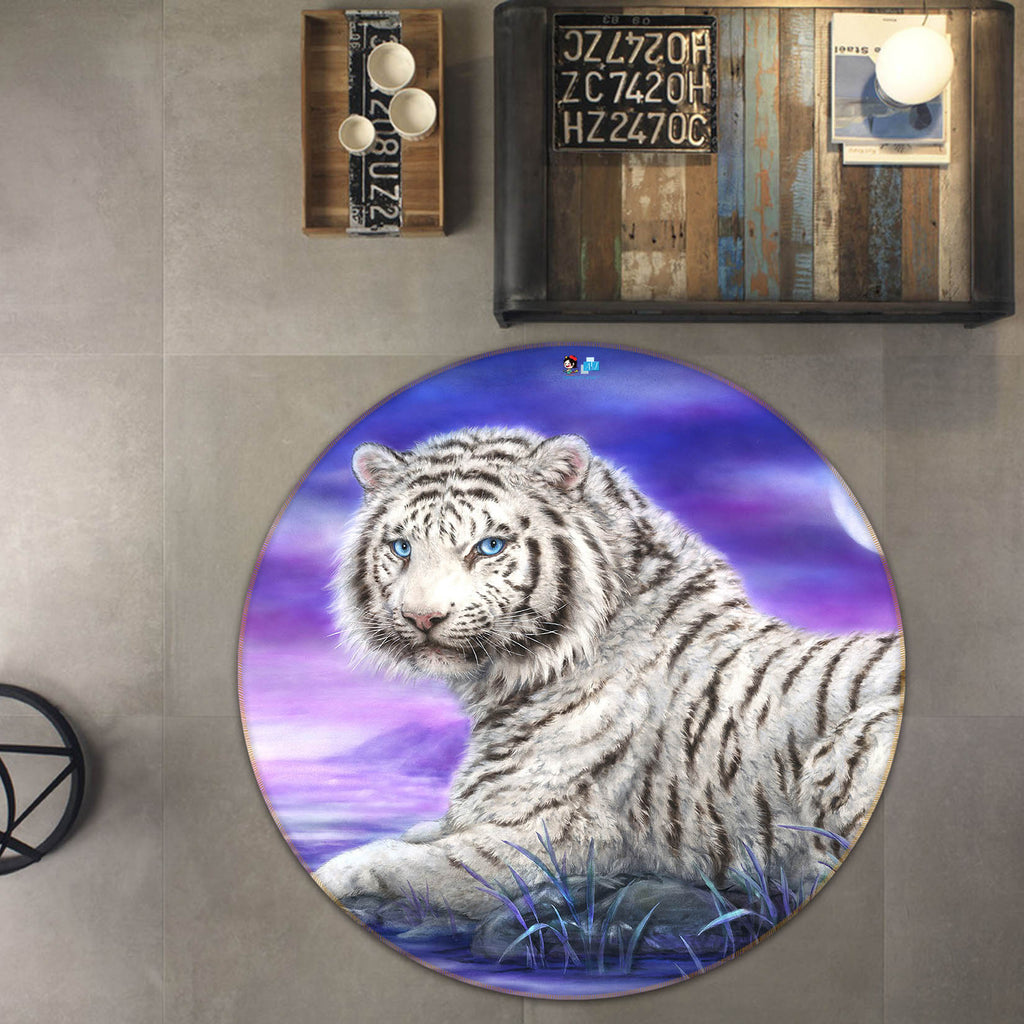 3D Tiger Moon 6037 Kayomi Harai Rug Round Non Slip Rug Mat Amy