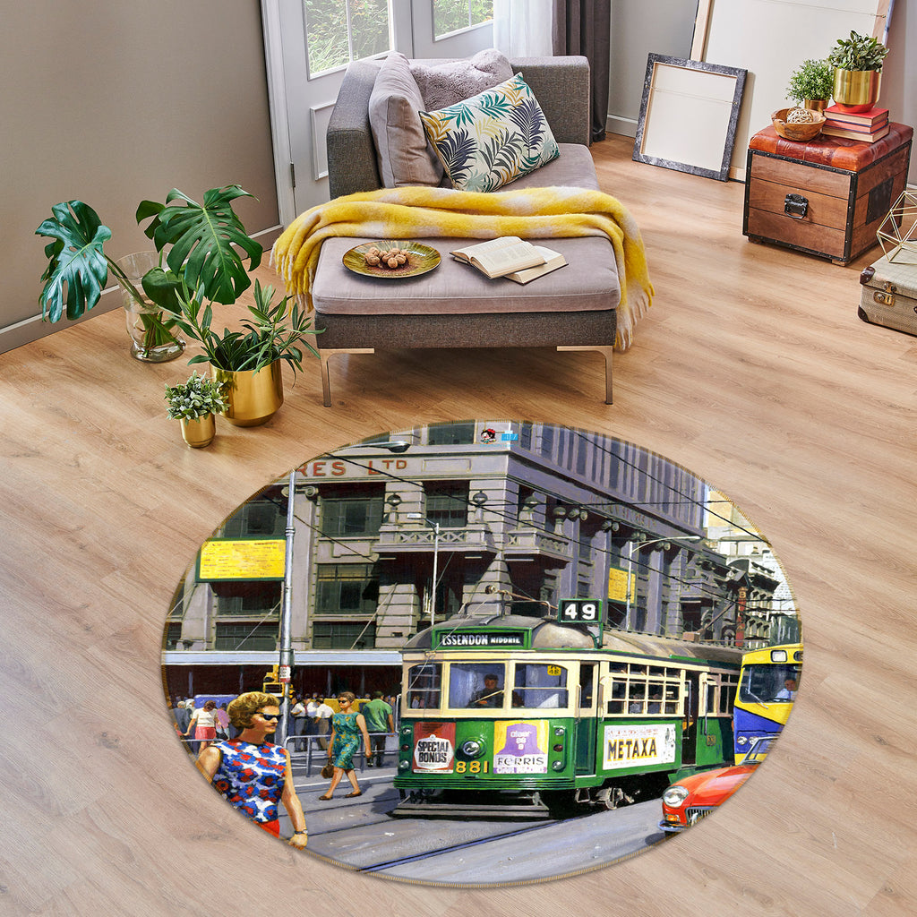 3D Green Tram 066 Kevin Walsh Rug Round Non Slip Rug Mat Amy